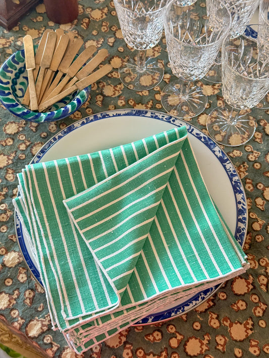 Green and White Striped Cotton Cloth Napkins, Set of 6