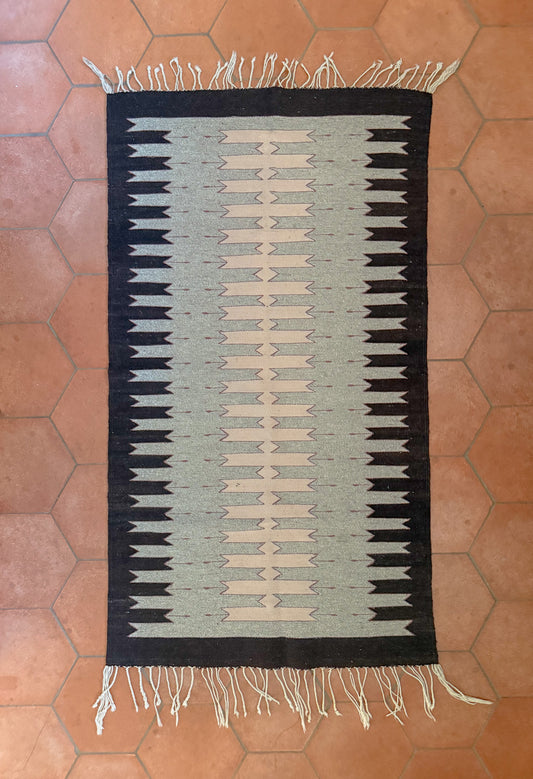 Vintage Zapotec Wool Woven Rug 34x60 Brown Blush Pink Textile Wall Hanging