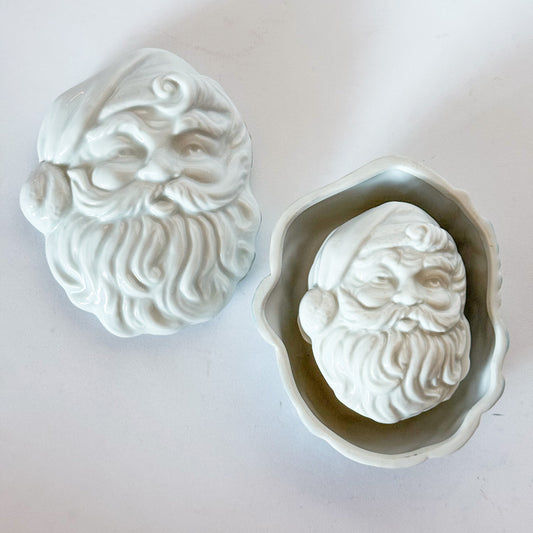 Vintage Porcelain Nesting Santa Boxes, Set of 2