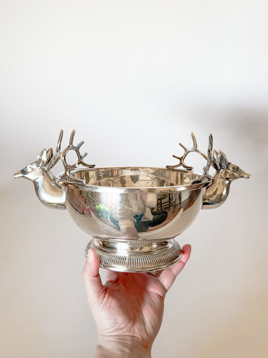 Vintage Silver Plate Double Stag Centerpiece Bowl