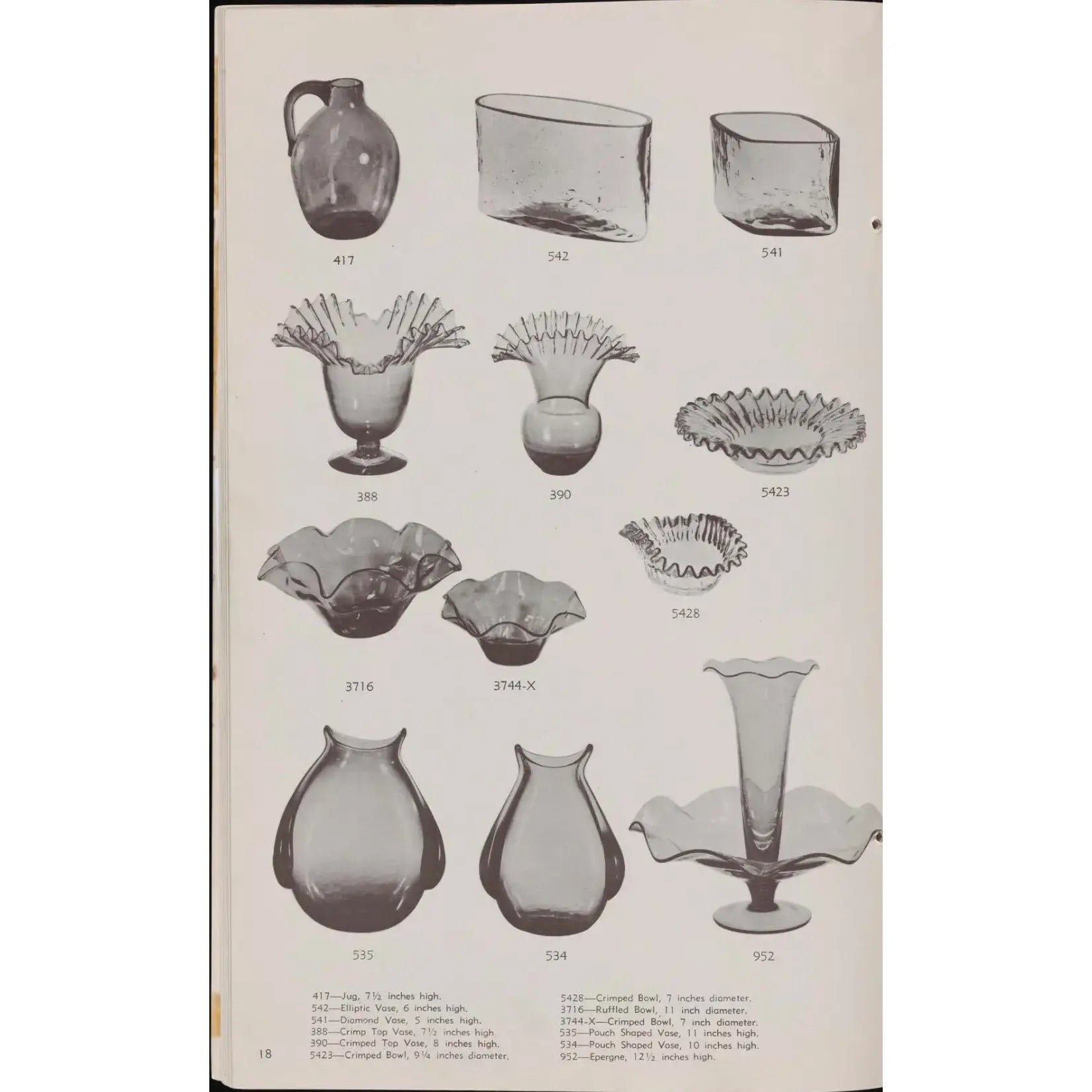 The last image shows the page from the 1956 Blenko catalog showing the #417 piece on the top left corner. It was made starting in the 1940s, but isn't found in the catalogs after the 1950s.