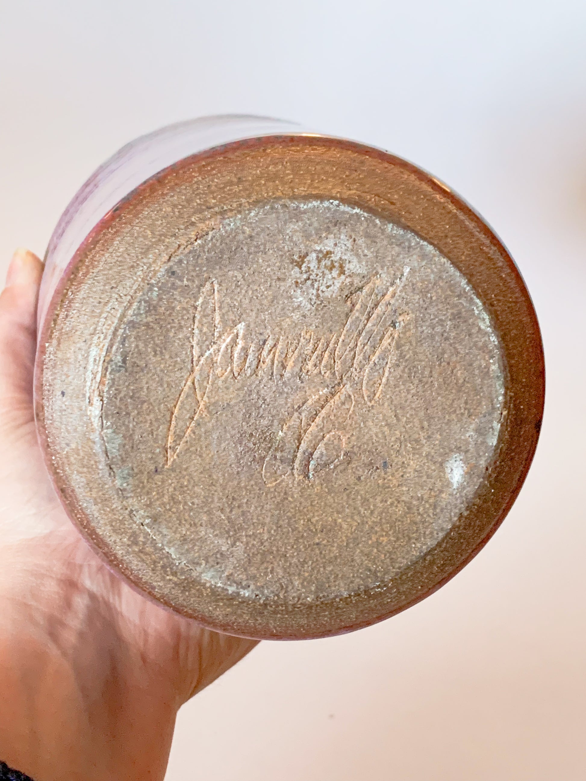 1950's Large Purple Drip Glaze Studio Pottery Art Vase, Signed