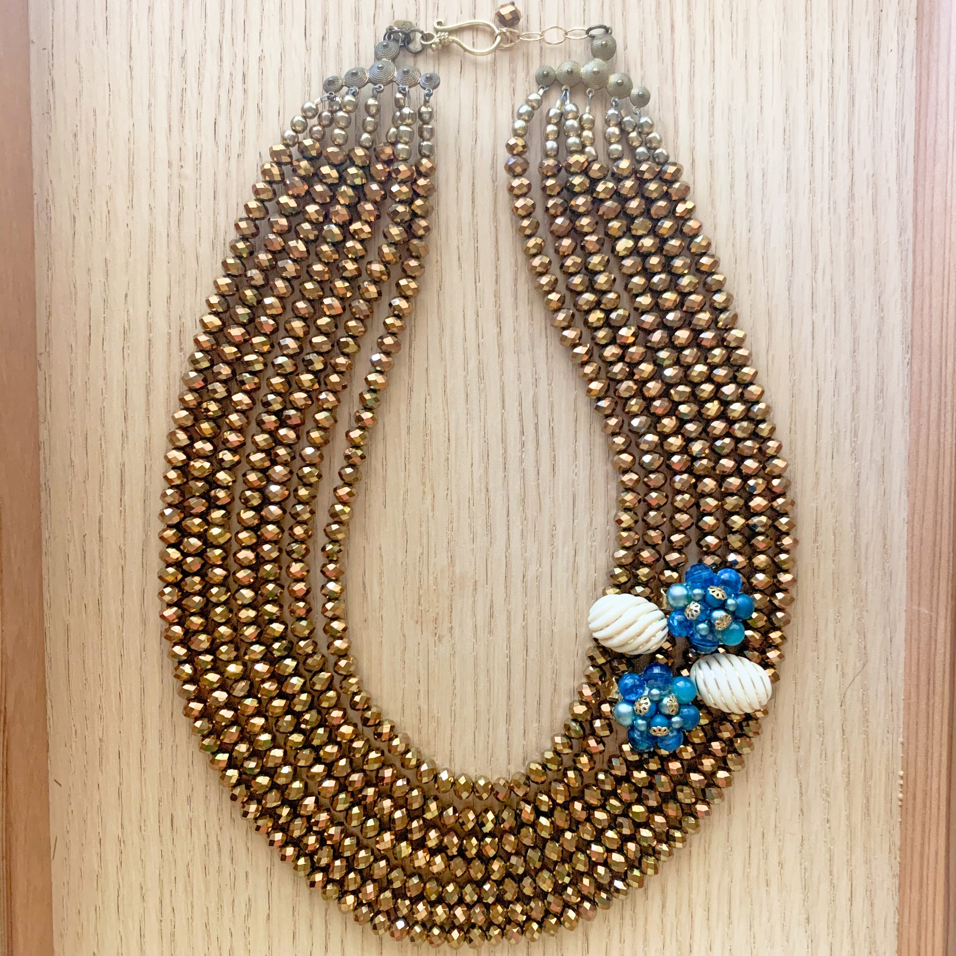 amanda k. necklaces from the "Modern Meredith" line are one-of-a-kind. You will be the only girl on the block with your necklace! Each piece will arrive at your door packaged in a handmade dust bag that can protect your jewels when storing or traveling.