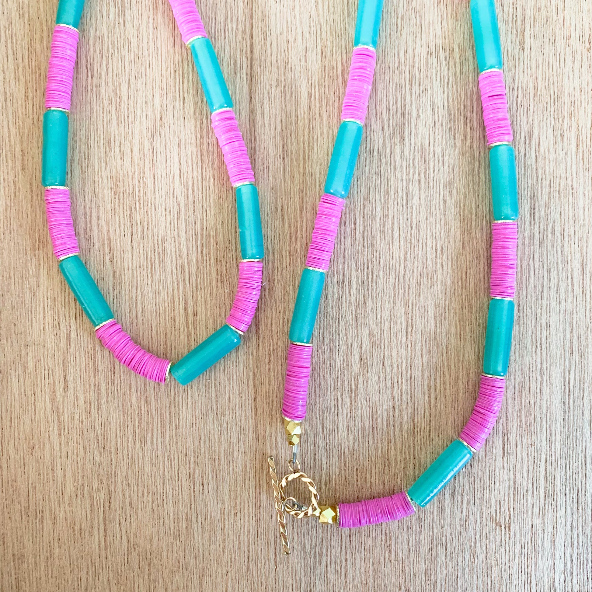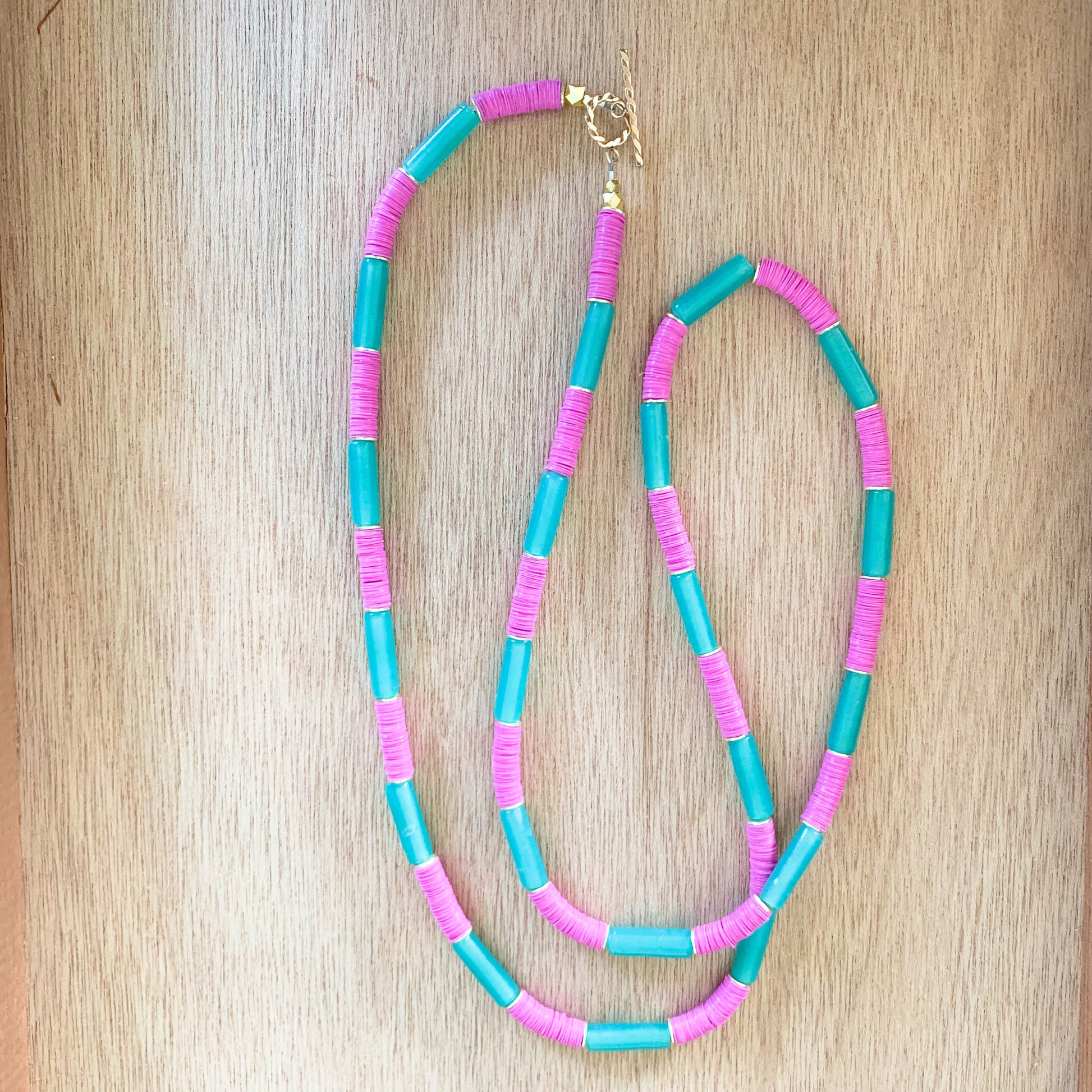 Checkered Layers: Orchid and Mint Long Statement Necklaces