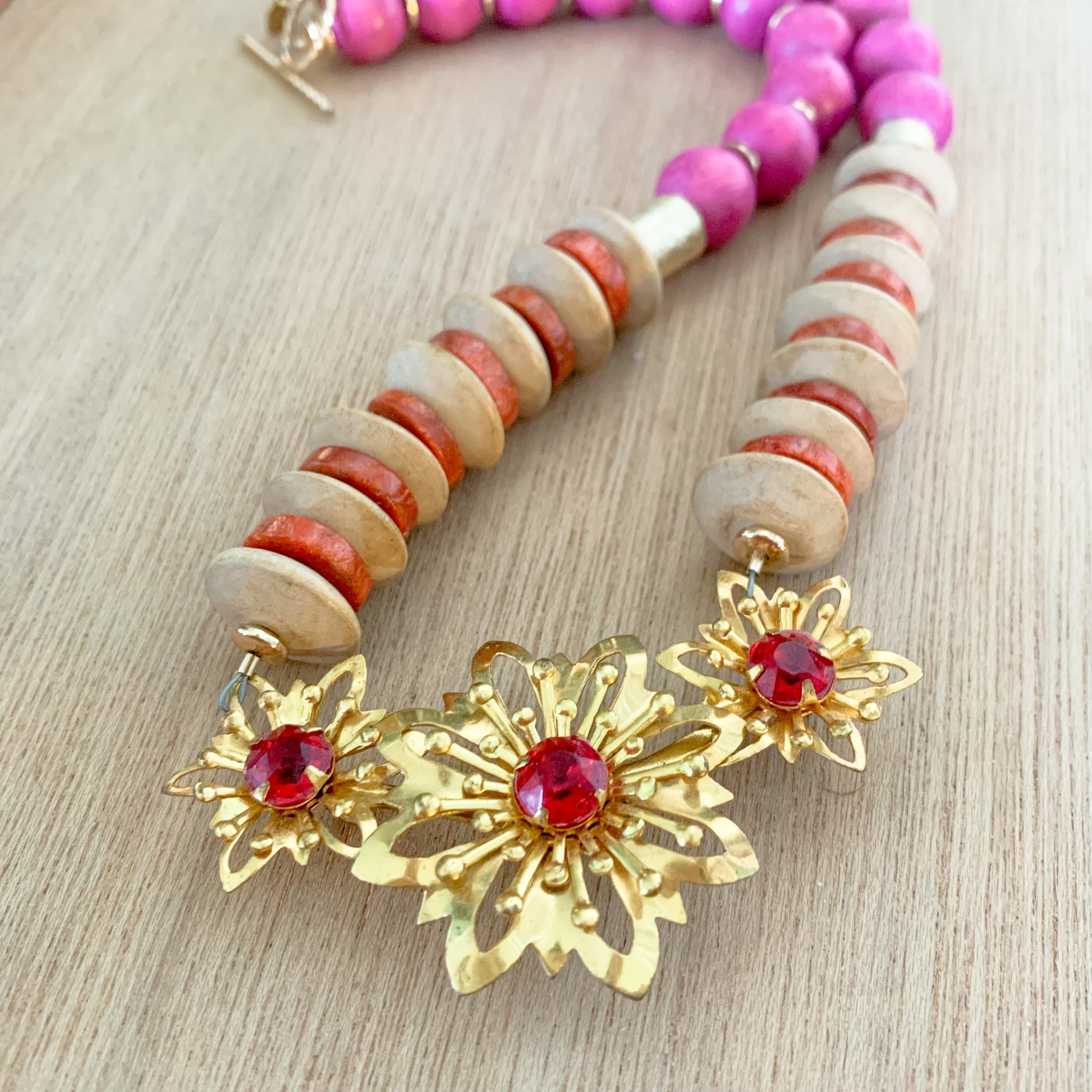 Cheerful and Lightweight, these happy gilt flowers come to life when paired with a favorite pink and red scheme!