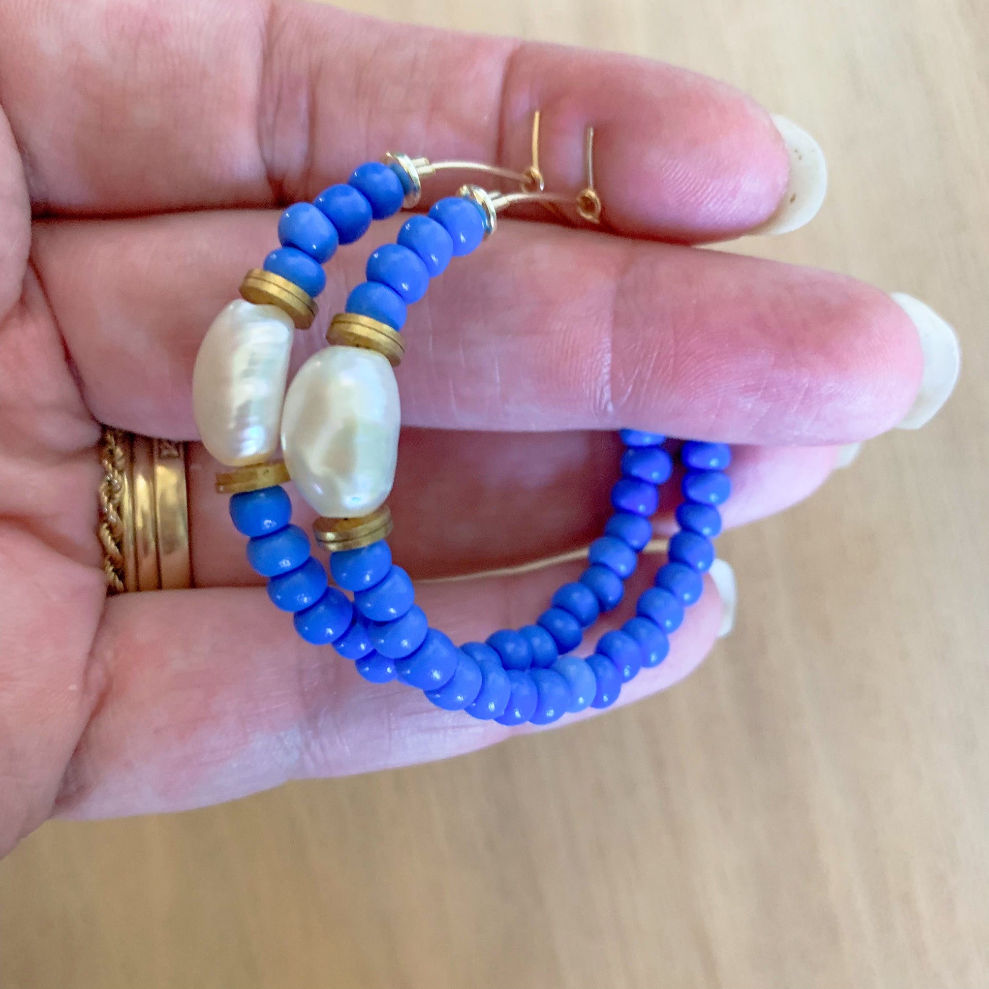 Italian periwinkle glass beads are paired with freshwater pearls.