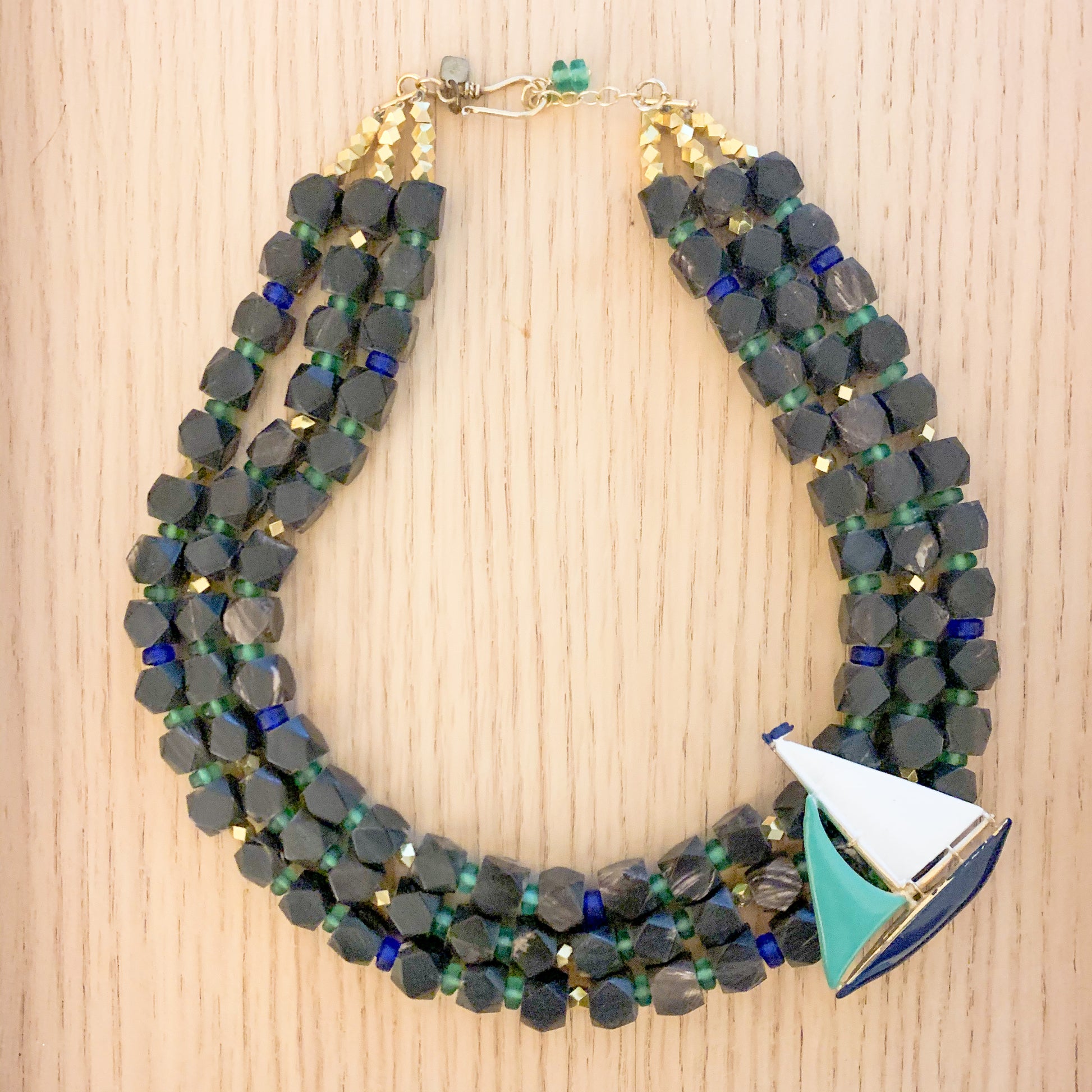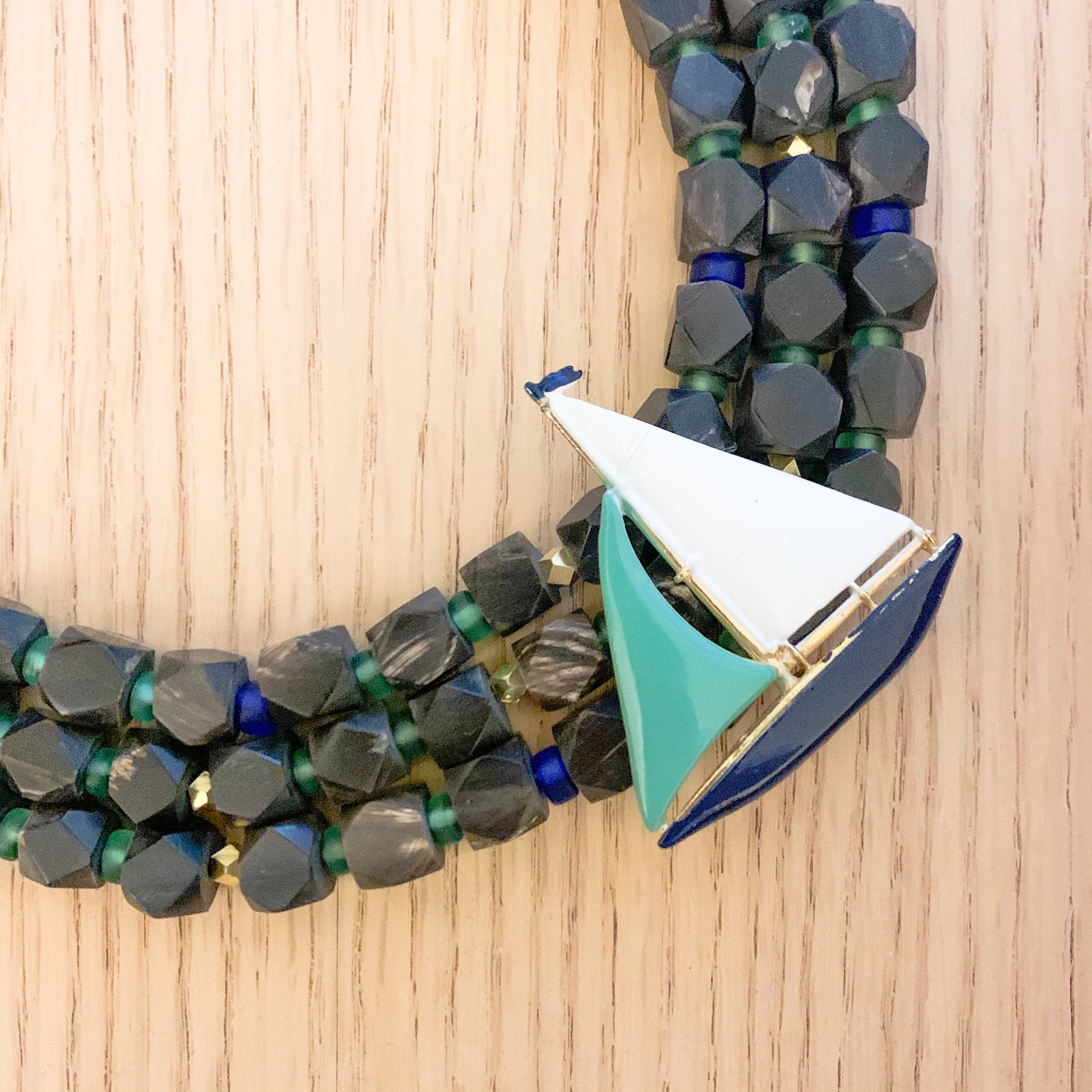 - vintage glossy blue and turquoise enameled sailboat brooch (removable)