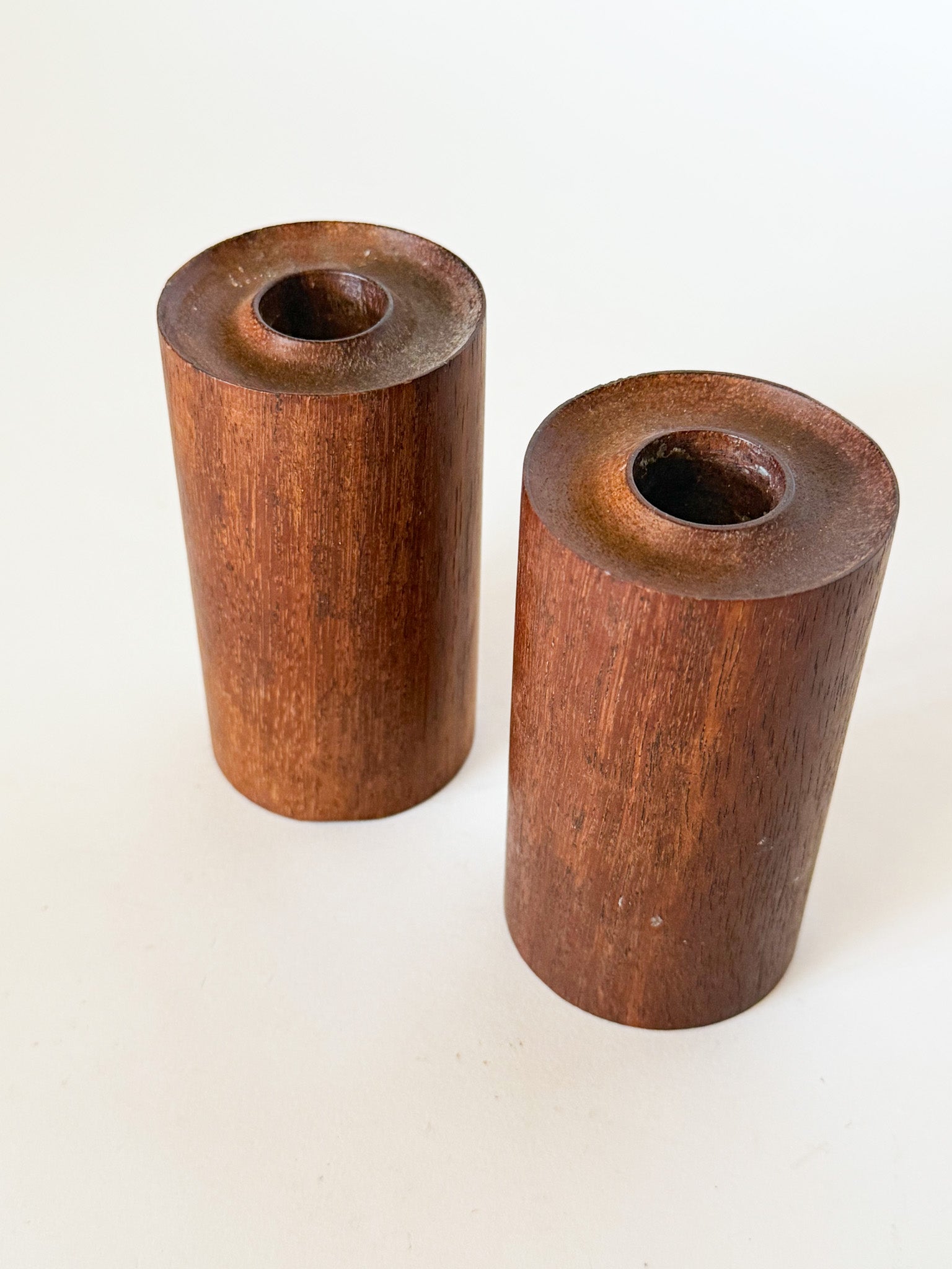 Mid 20th Century Danish Style Wood Cylinder Candle Holders