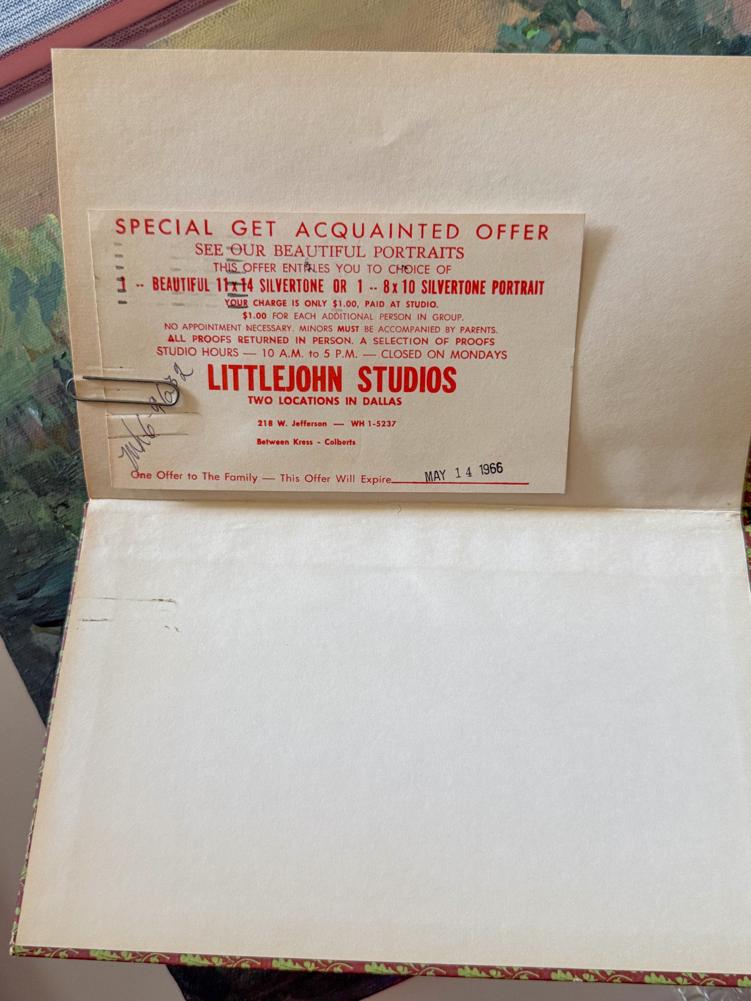 Sourced at a Dallas estate, and we found this little original coupon mailer to the owner paperclipped in the front cover! A little window into the past.