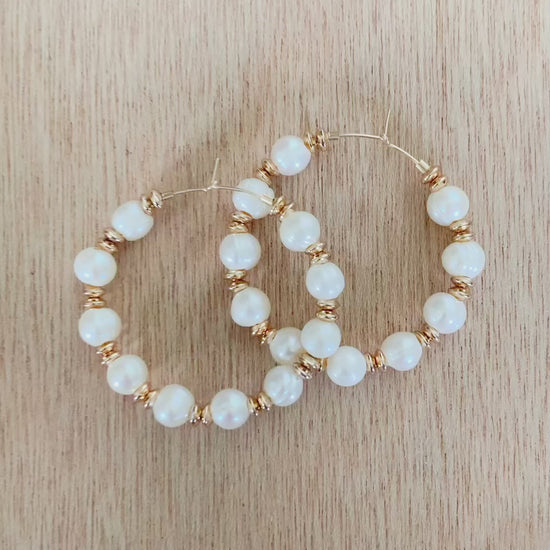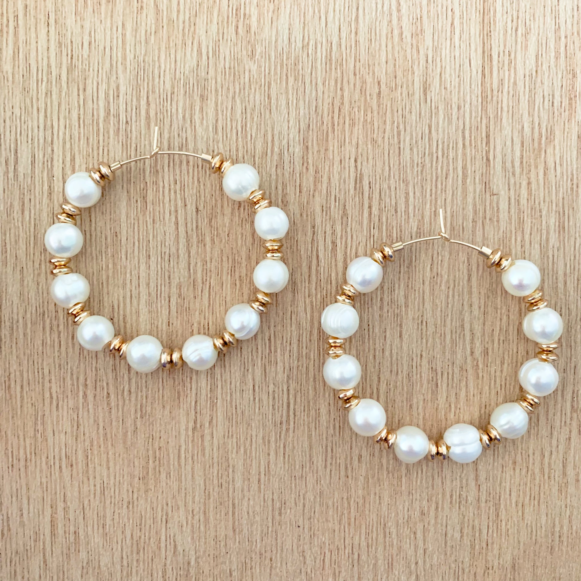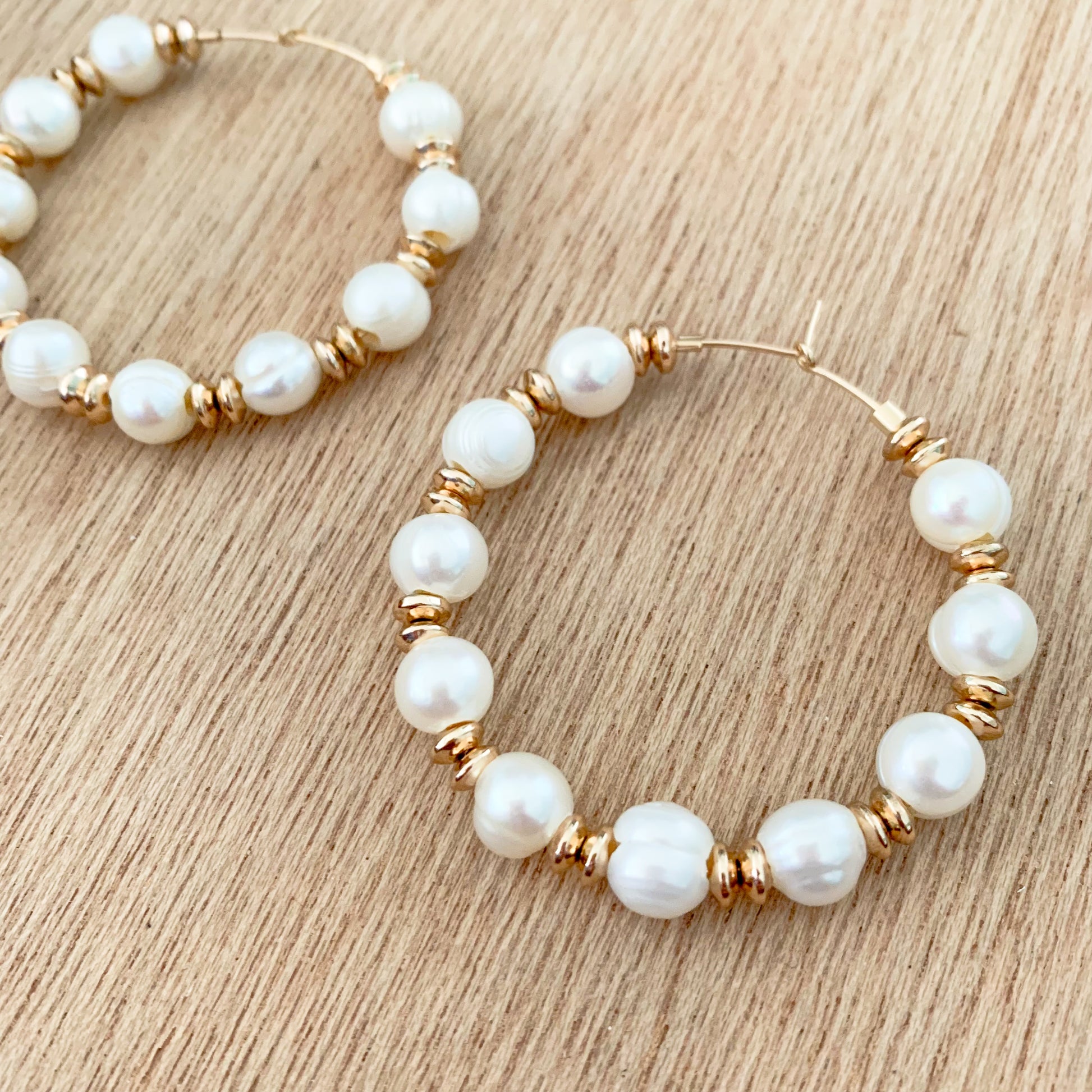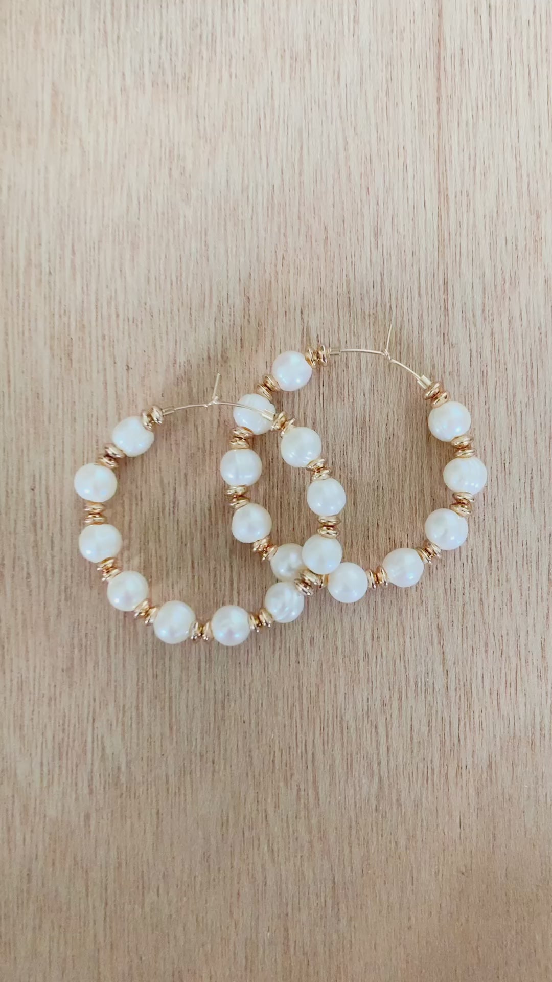 The prettiest and classiest hoop you ever did see. Freshwater Pearls and gilt details are the perfect way to dress up a casual outfit, or deck out a party dress!