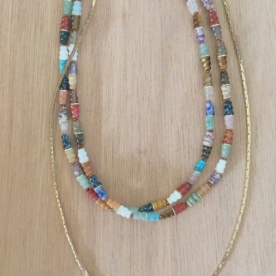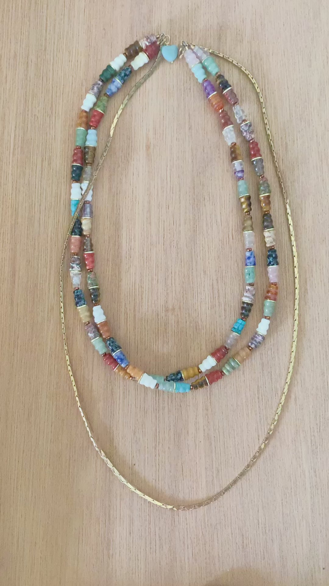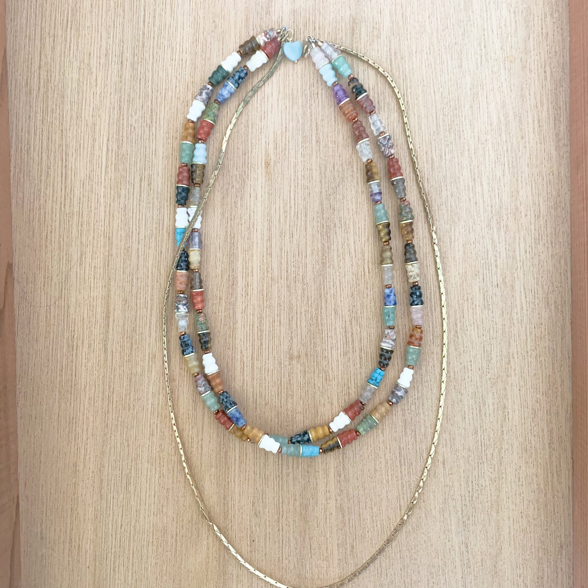 This dainty little statement necklace is the definition of versatile! You can wear it long or short, with the gilt vintage chain hanging below, or around your neck. The possibilities are endless! And, it is chock full of so many precious stones and colors in the cutest beehive shape, you will have no trouble coordinating it with any part of your wardrobe.