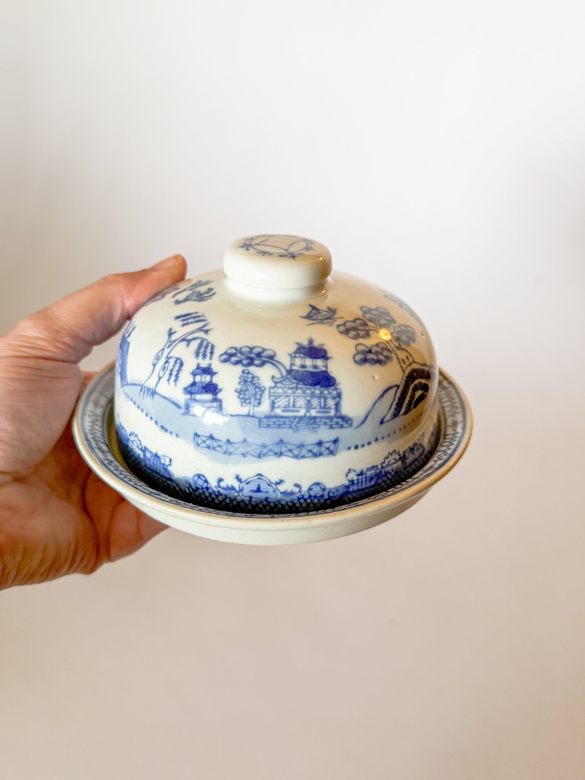 Vintage Blue Willow Cheese Dome/Butter Dish