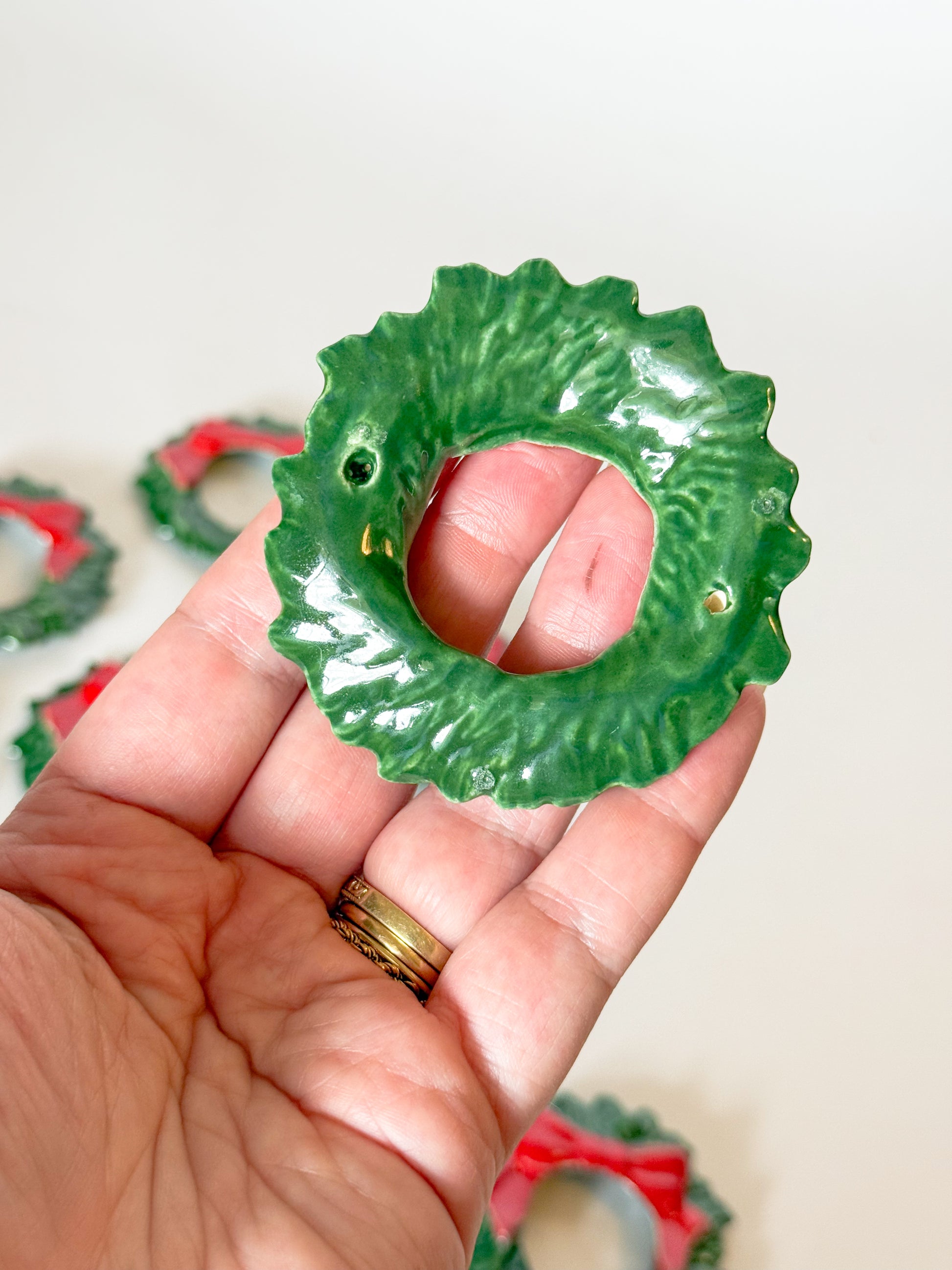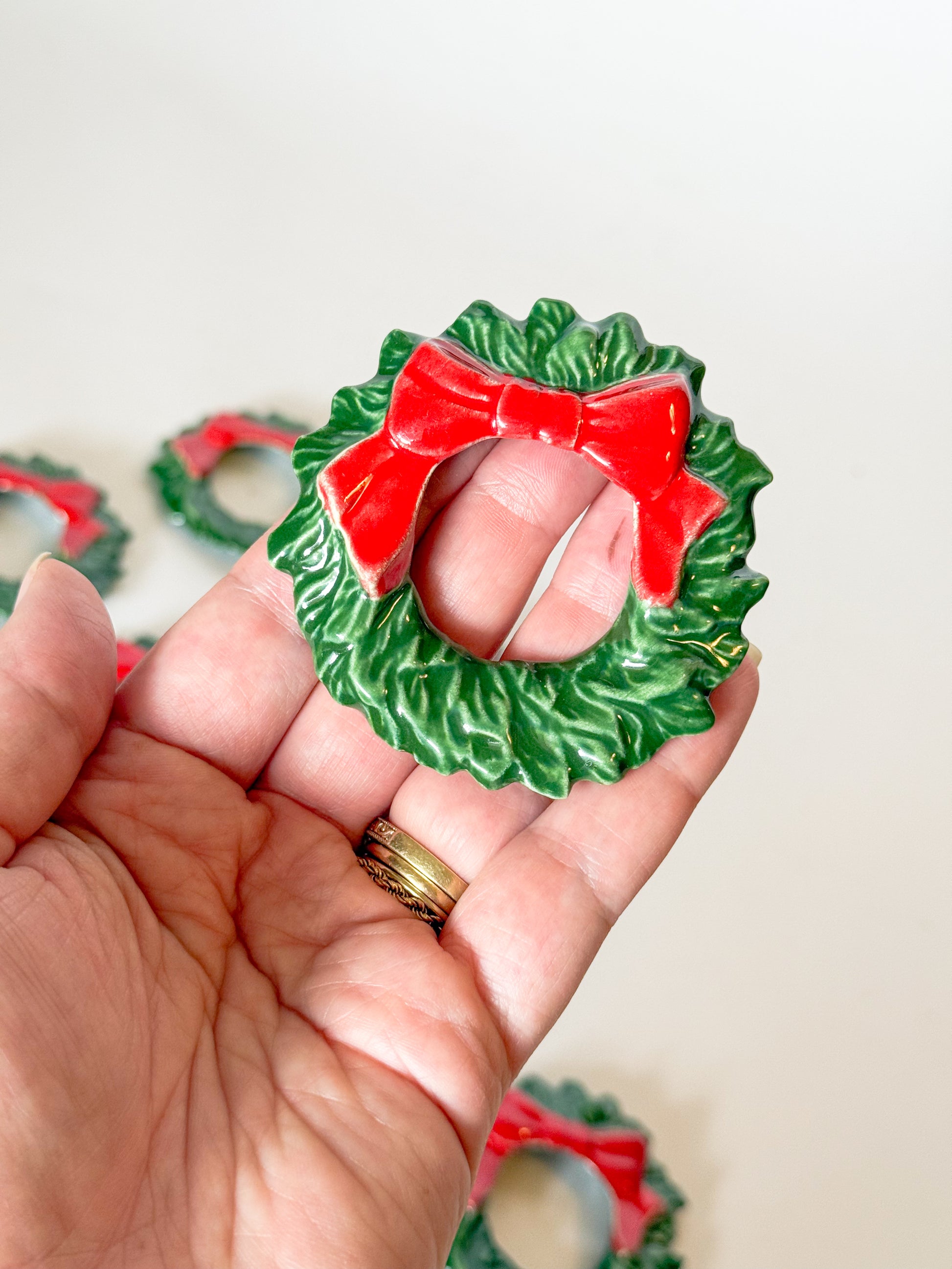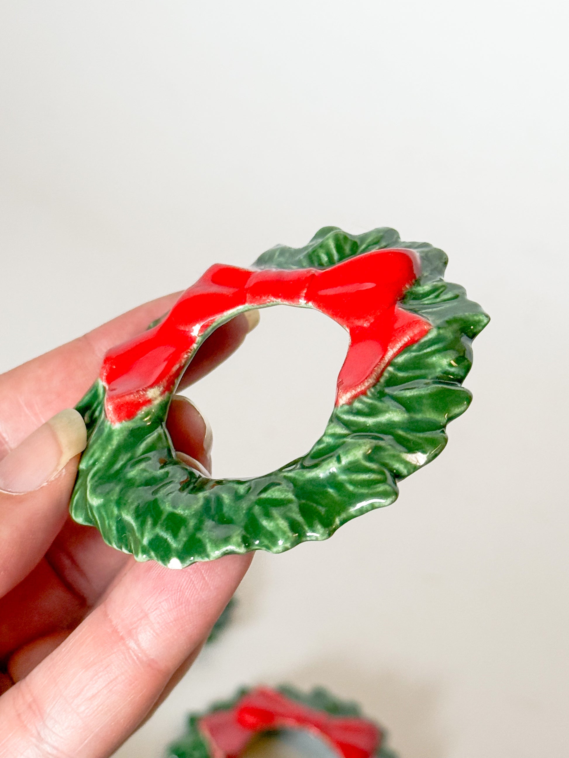 Vintage Ceramic Christmas Wreath Napkin Rings, Set of 11