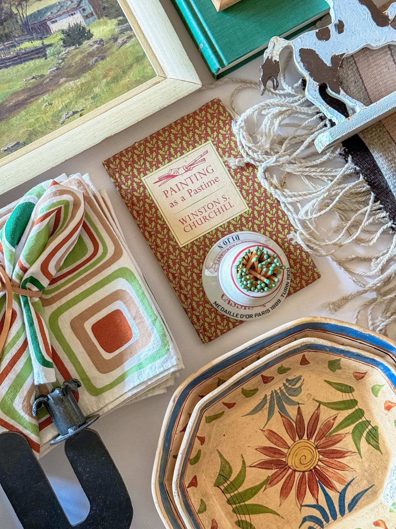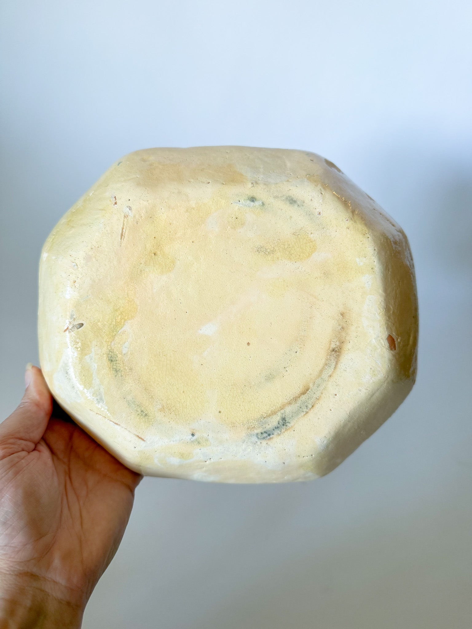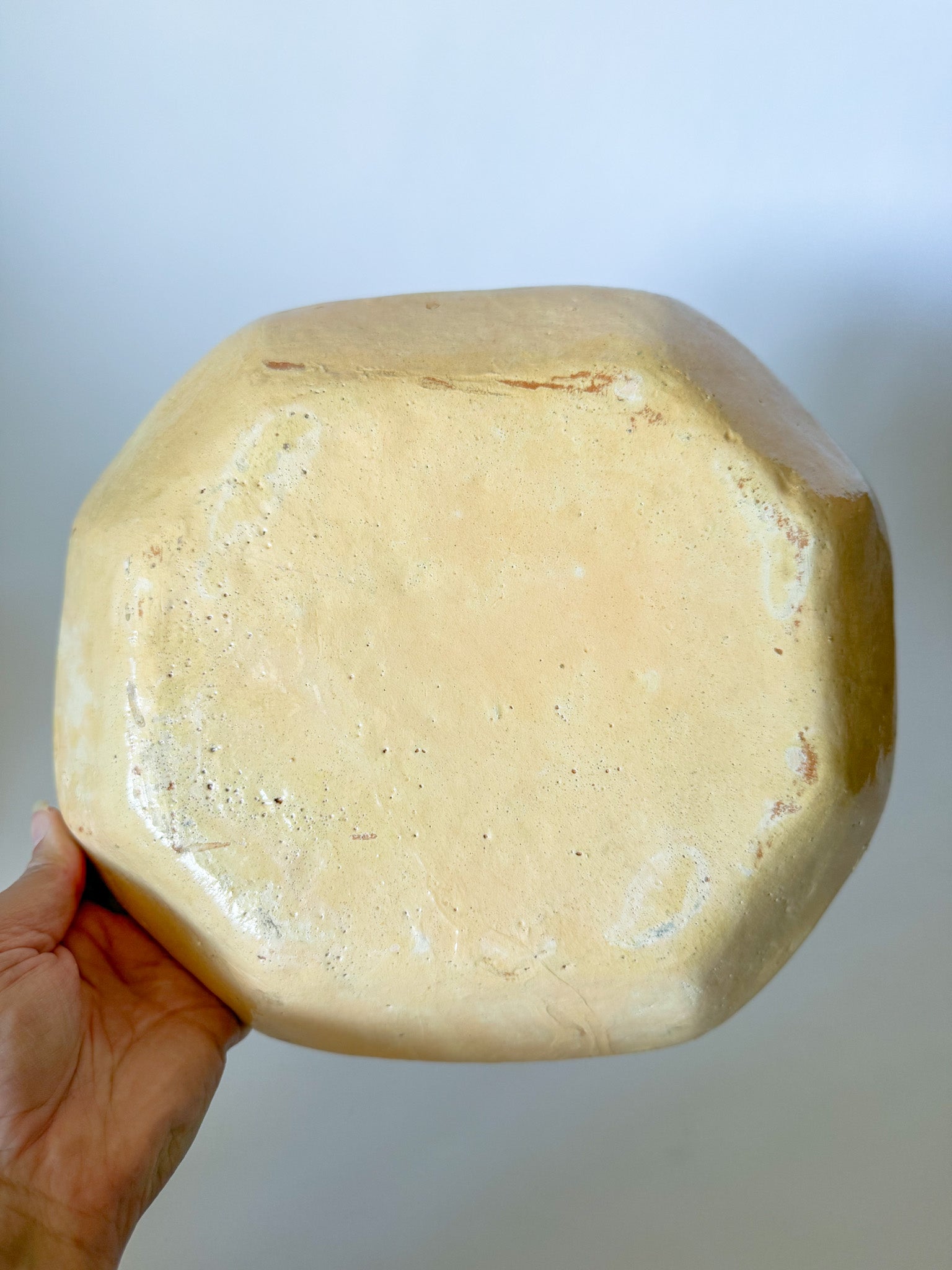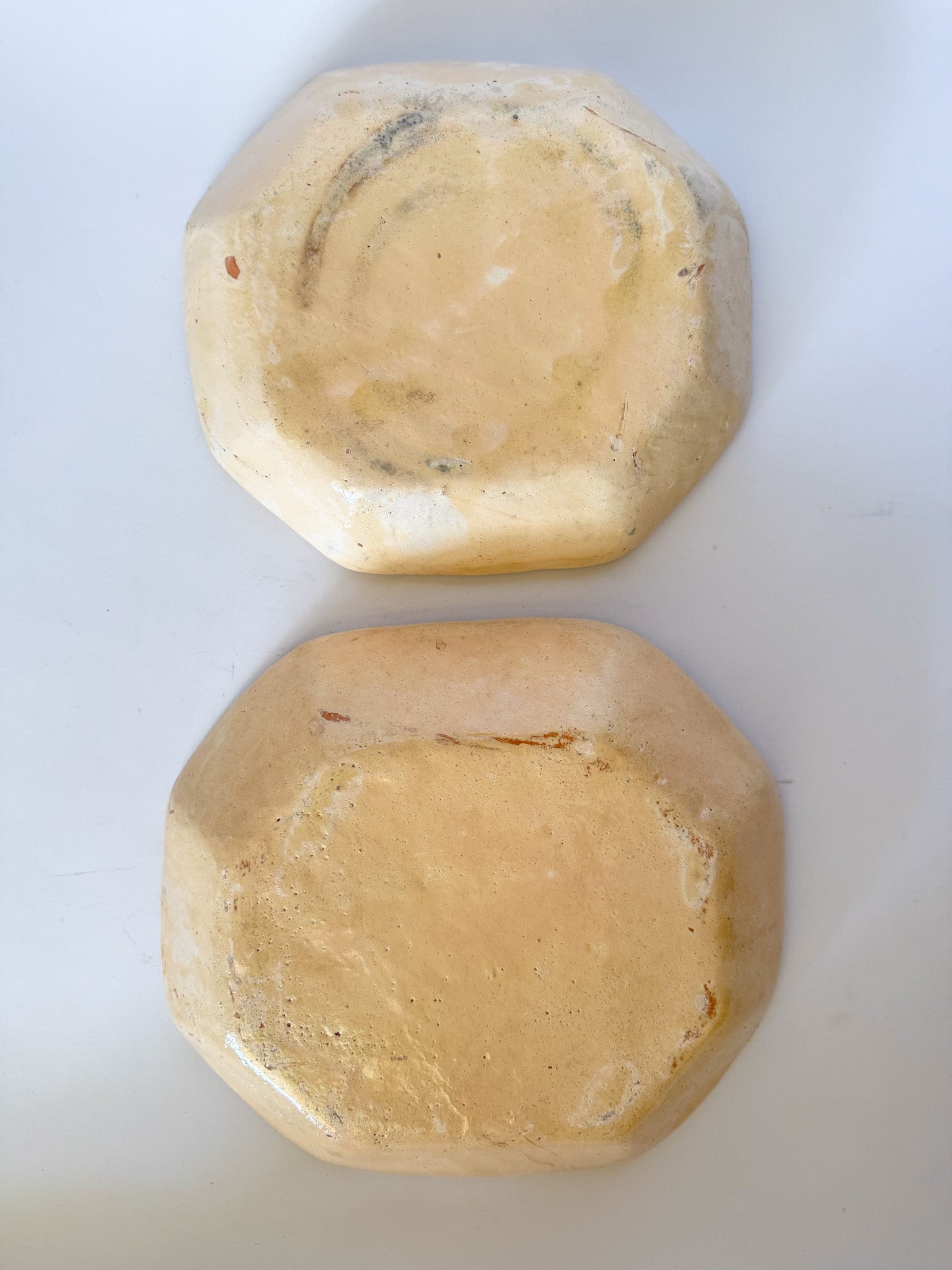 I love and personally collect Mexican pottery, so I tend to be very picky about what I source. This set is really beautiful with a creamy yellow background and a great flower and border motif in shades of rust, denim blue, and green. Iconic Tlaquepaque pottery at its finest!