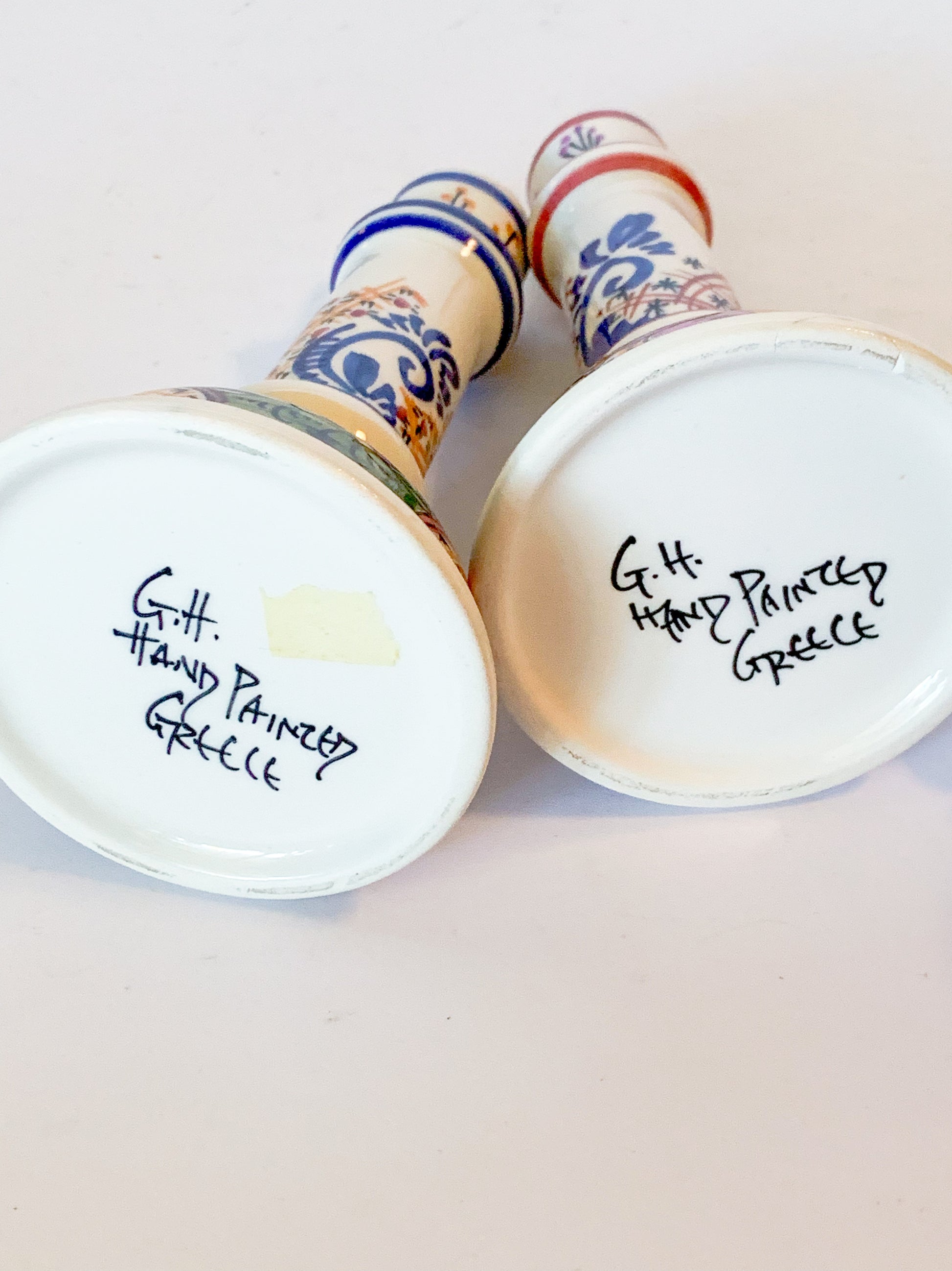 Vintage Ceramic Candlesticks Hand Painted in Greece