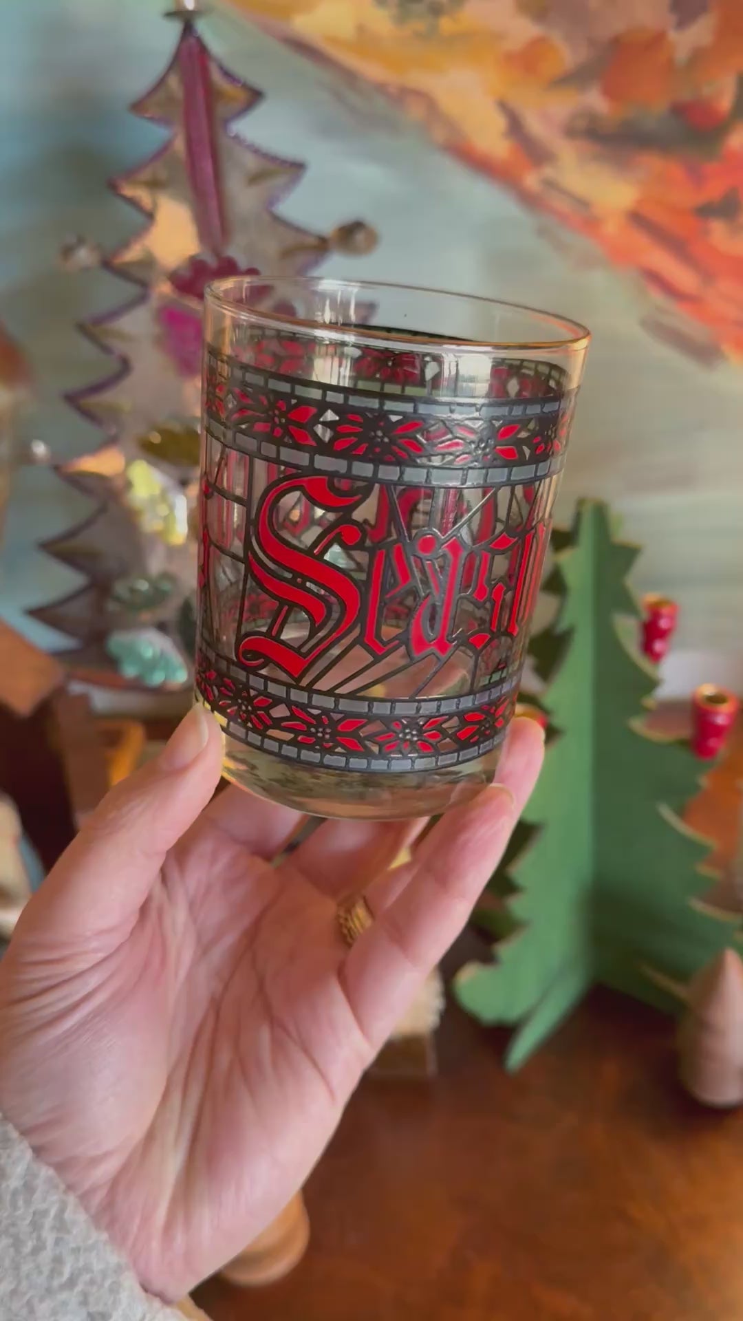 An iconic and festive "Season's Greetings" gold rimmed tumbler by Houze, made in the 1970s. When I shared a sneak peek of these on Instagram, I got tons of messages from people sharing memories of using these glasses as children at their grandparents' or parents' homes. Grab a set for some serious Christmas nostalgia!