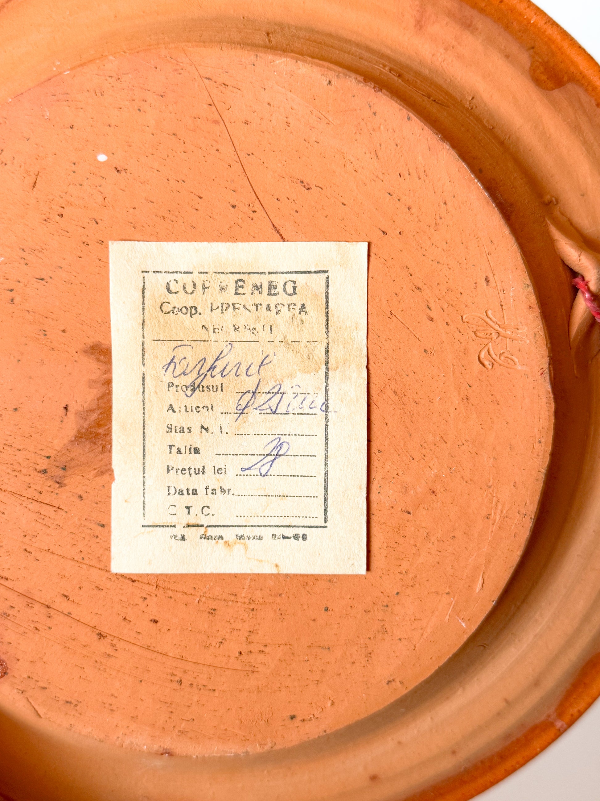 This vintage redware bowl is a beautiful example of Hungarian pottery, with the sgraffito (scratched in) yellow, brown, green tulip and twist motif. Found with a collection of vintage pottery from all over the world. Still retains it's original label.