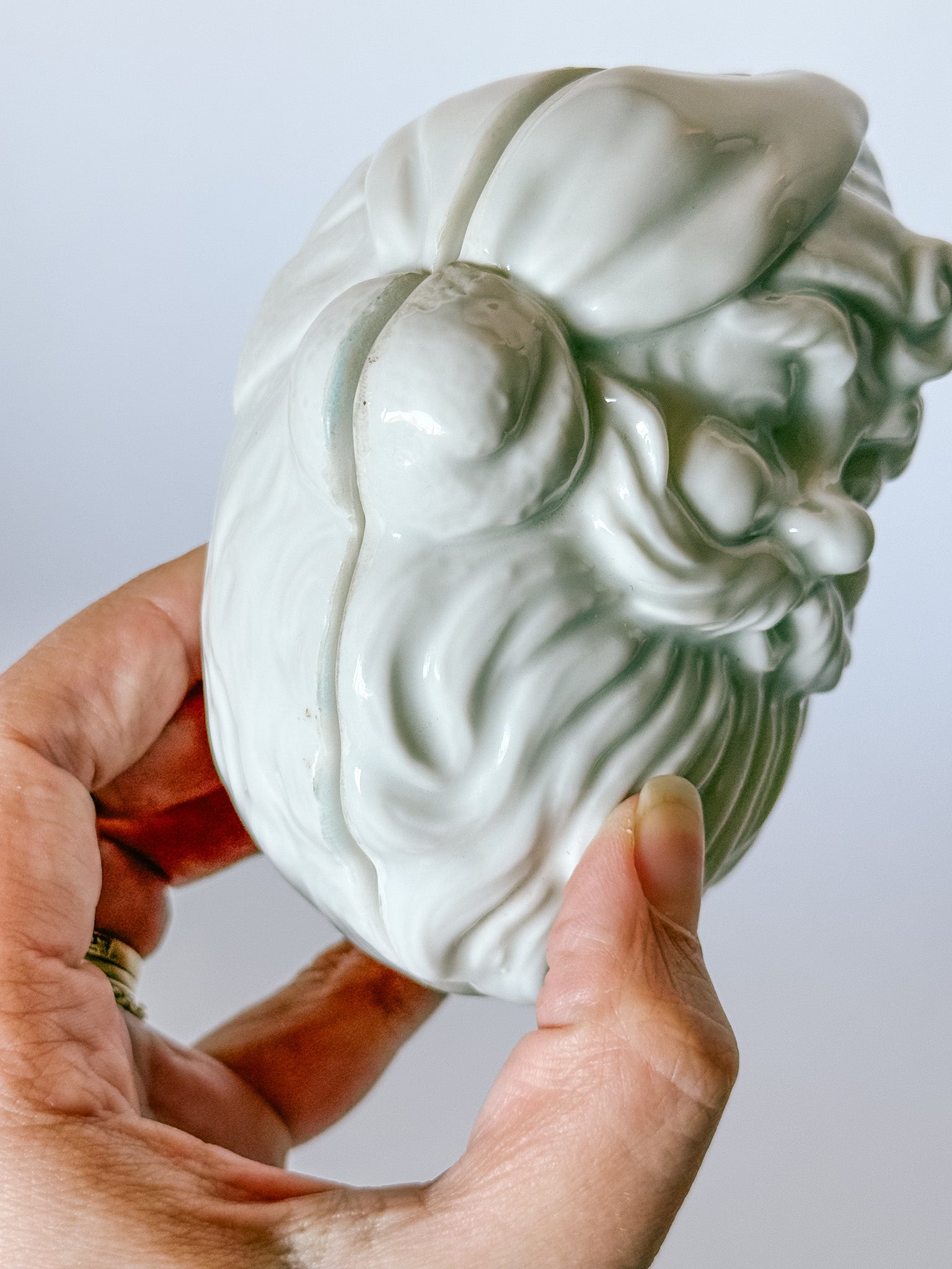 The face of this Jolly St. Nicholas is reminiscent of the beloved vintage Santa mugs.