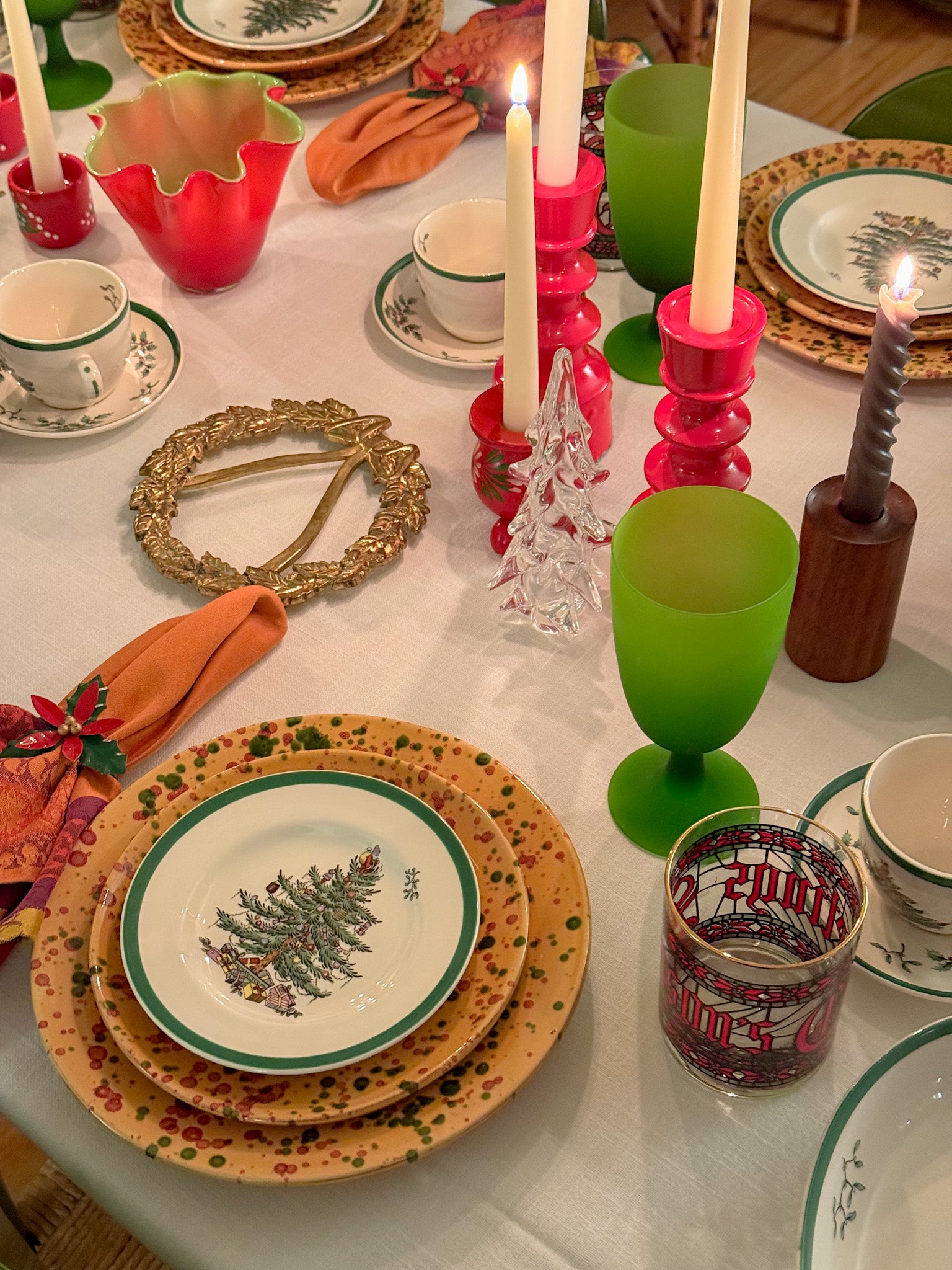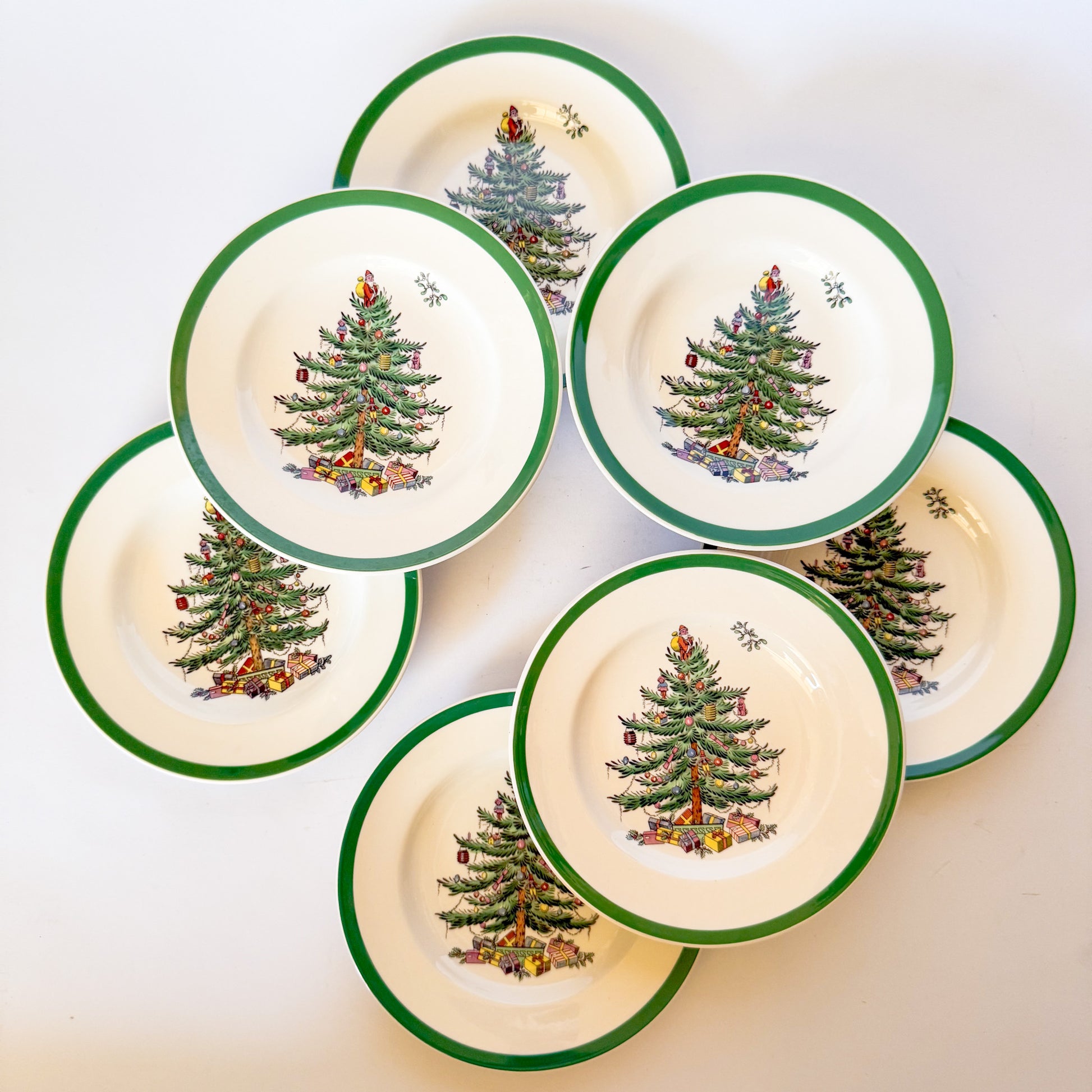 Vintage iconic Spode Christmas Tree pattern dessert plates, set of 7.