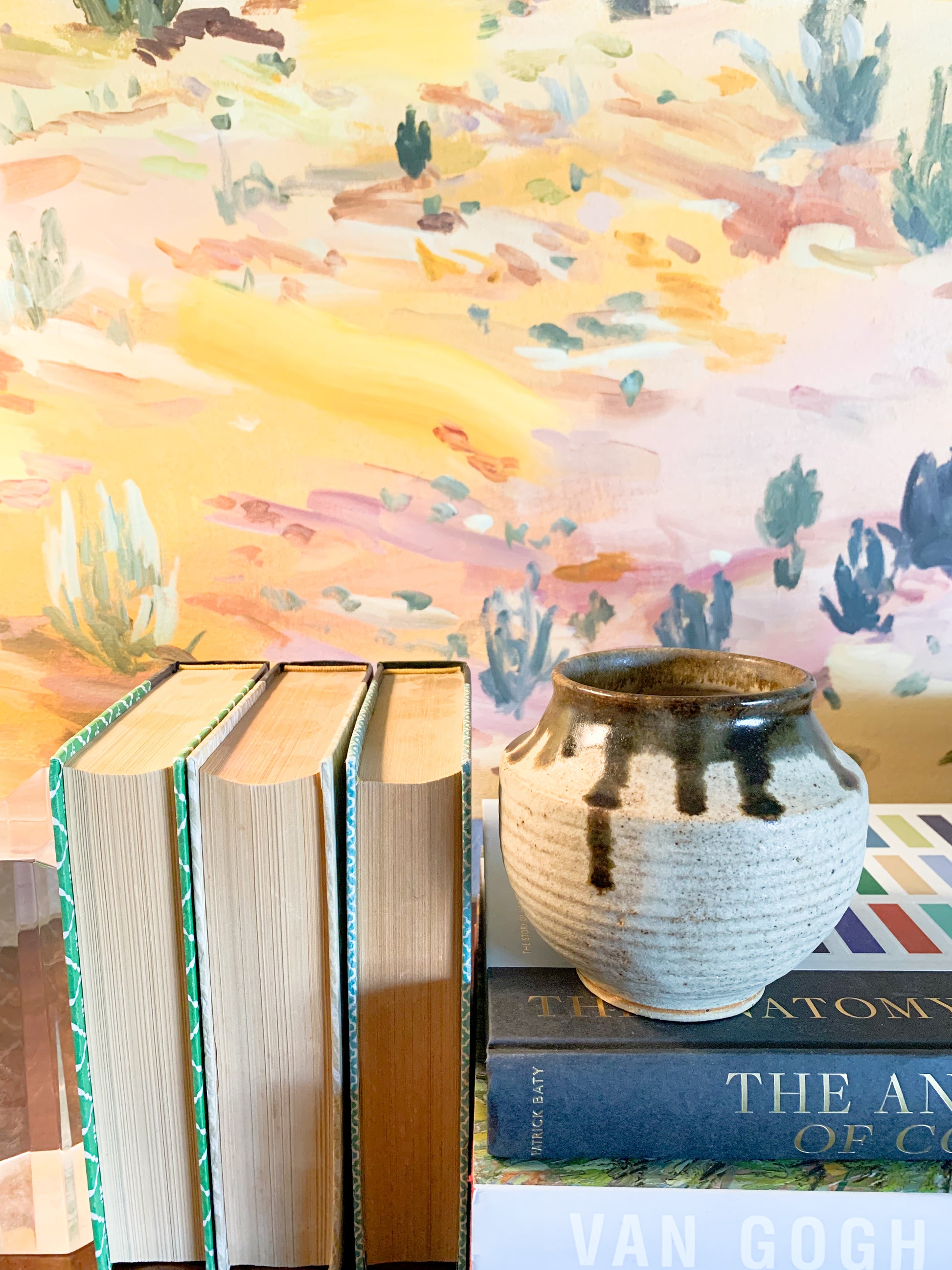 I'd style this in a pottery collection on a console or mantle, on a stack of books in a bookcase, or use for small fresh flowers.