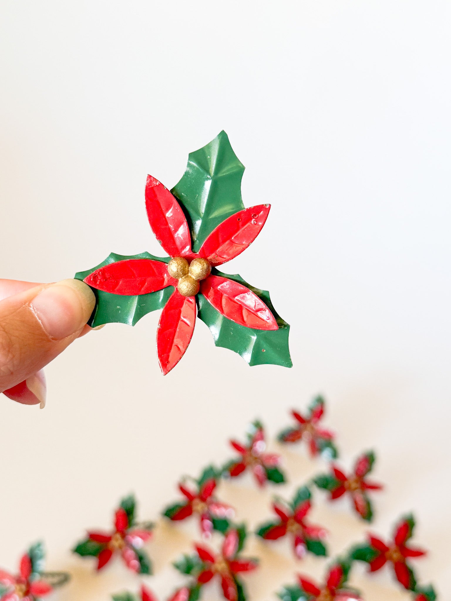 Vintage Tole Style Poinsettia Flower Napkin Rings - Sold in Sets of 4