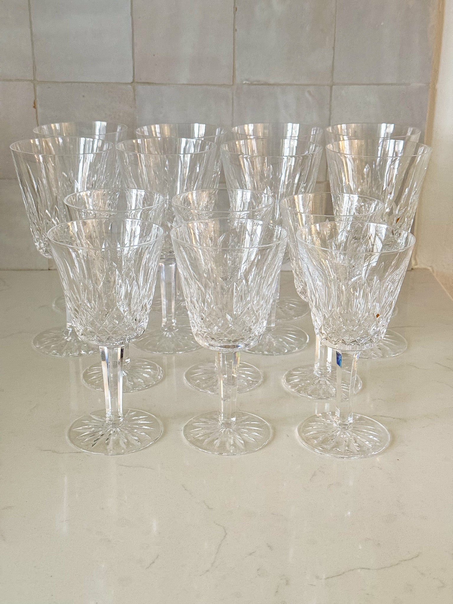 Stunning complete set of vintage Waterford Crystal Lismore pattern goblets just in time for holiday entertaining! A great starter set for less than half what these normally sell for.